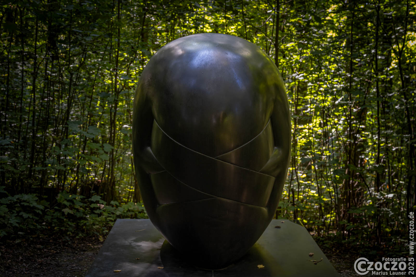 Schon bei meinem ersten Besuch des Parks ist mir dieses Kunstwerk sofort ins Auge gesprungen und vor die Linse gekommen. Zuhause angekommen, war ich mit dem Ergebnis jedoch nicht wirklich zufrieden. Die Gegenlichtsituation machte die Aufnahme extrem schwierig zu bewältigen. Zumindest fand ich damals keine kreative Lösung dafür – und eine solch frontale Aufnahme wirkte auch nicht besonders aussagekräftig.
