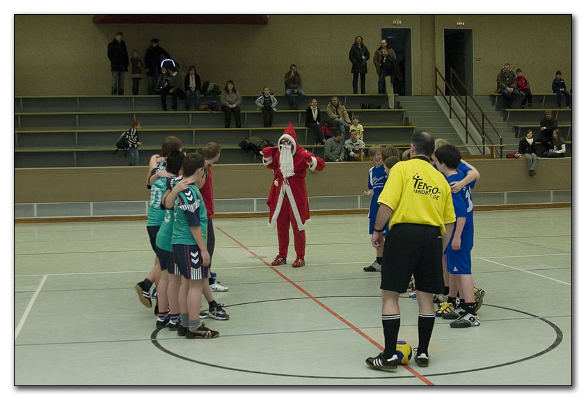 Pünktlich um 16:00 Uhr standen dann alle auf dem Spielfeld, bereit den Gegner und Schiedsrichter zu begrüßen . Zu aller erst wurden wir alle von einem Waschechten Nicolaus begrüßt .