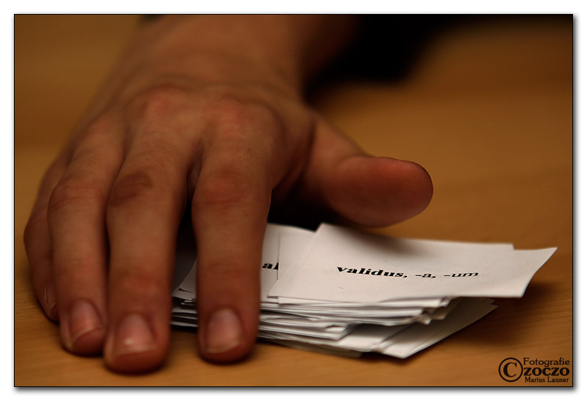 Die Vokabel Karten habe ich bei meinem Sohne gesehen , beim täglichen Vokabel pauken .
