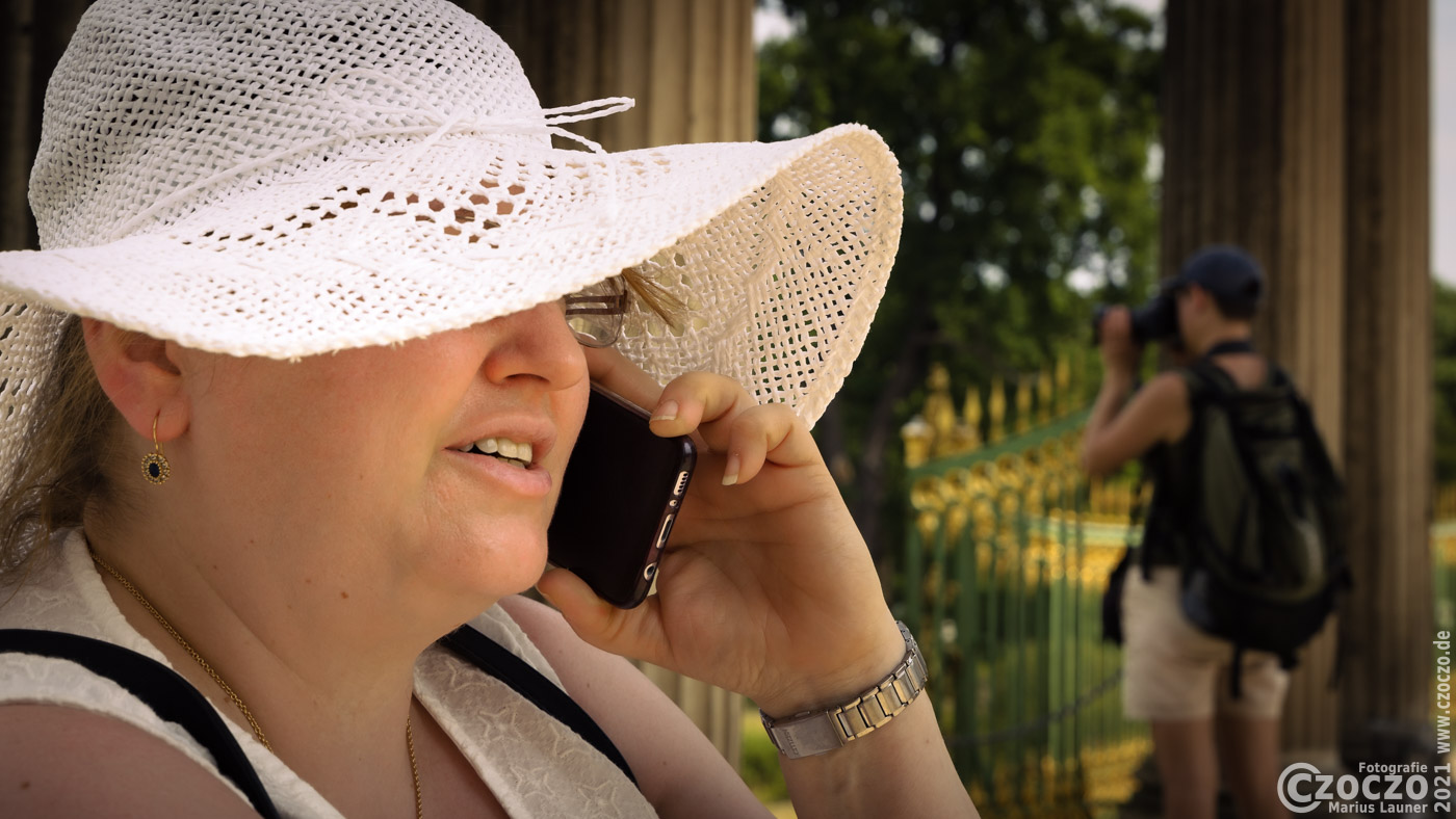 Kurz nach dem wir im Hotel eingecheckt haben, waren wir schon unterwegs Richtung Schloss … Das 1,5km Fußweg ist eine schöne aufwärmstrecke… wobei draußen waren schon weit über 30°C. Angekommen am Schlosseingang, war ich erste mall froh, dass ich wenigsten den Stativ im Auto gelassen habe. Obwohl an dem Tag werde ich ihn öfter vermissen… aber zu dem ganzen was ich so auf dem Ricken (und Hüfte) tragen muss, lag das Stativ im Auto am sichersten.