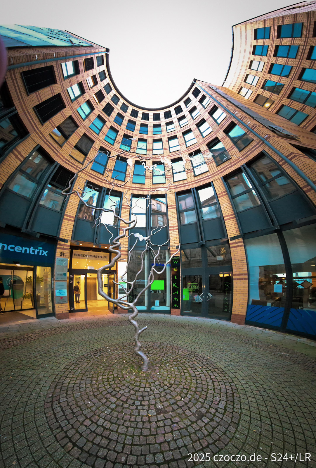 Mir fällt vor allem auch das Gebäude total ins Auge und wie es den „Baum“ umrahmt. Tolle Perspektive.