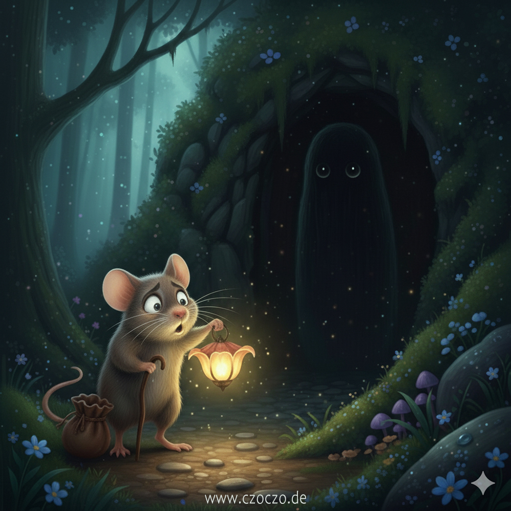 Um Ärger zu vermeiden, drückte Pieps die Laterne fest an sich und wagte keinen Schritt näher. Er änderte die Richtung auf der Stelle. Die Höhle am knorrigen Baum war für diese Nacht gestrichen. Mit einem Gefühl von beklemmender Angst schlich er sich so leise wie möglich an dem unbekannten Wächter vorbei und suchte im finsterer werdenden Wald ein anderes, kleineres Versteck.