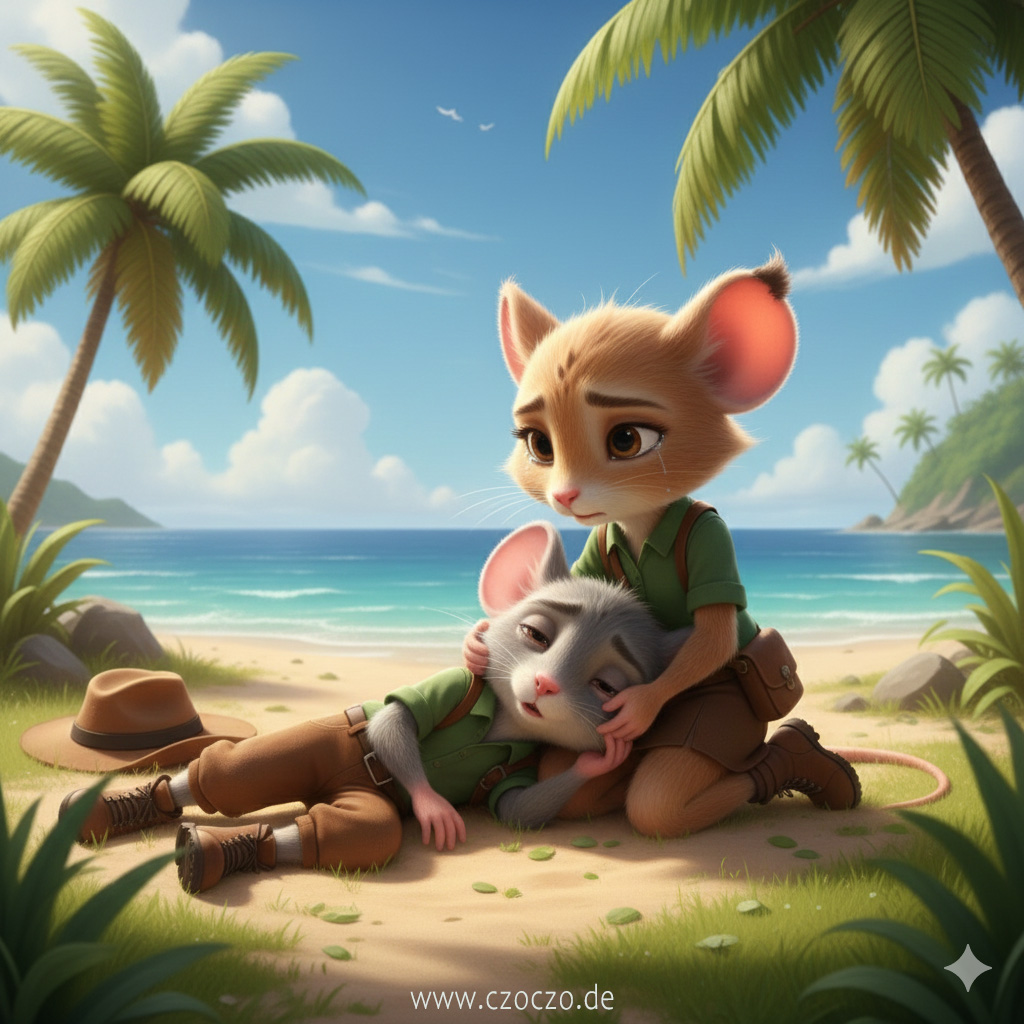 Ihr blieb nur dieser eine, letzte, unmögliche Versuch. Mit zitternden Händen reinigte sie vorsichtig die schlimmste Wunde mit einem Fetzen Stoff aus ihrer Tasche und stoppte den Blutverlust. Dann der letzte Versuch: die winzige Herzmassage. Sie drückte, ihr eigenes Herz raste. Sie drückte erneut, flüsterte seinen Namen, flehte die Sonne an, die sie sonst mied. Und dann, beim dritten Mal, ein Wimmern. Pieps keuchte. Ein tieferer Atemzug riss ihn zurück ins Leben. Die Tränen auf Minas Wangen wurden zu Tränen der Erleichterung.