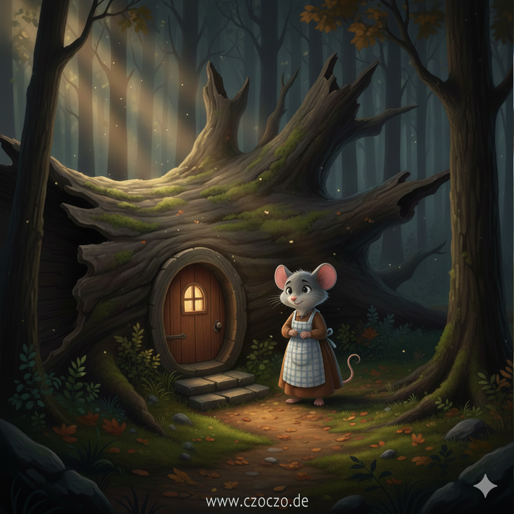 Endlich erreichten sie den großen Wurzelstock einer alten Eiche. Mina stieg vorsichtig ab, Pieps behutsam in ihren Händen.