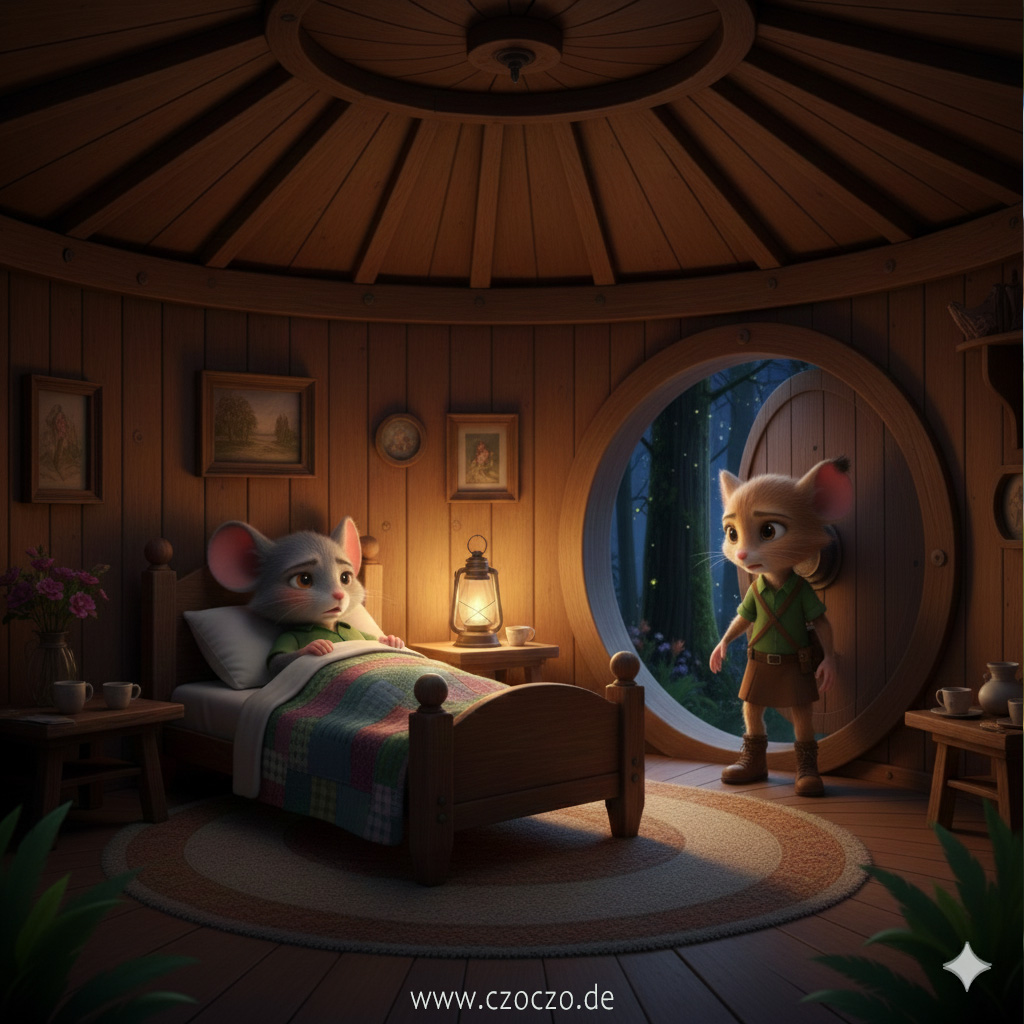 Doch niemand war da. Seine Mutter war fort, Mina war verschwunden. Sogar seine lästigen Geschwister – die sonst jede Gelegenheit nutzten, um Unfug zu treiben – waren mucksmäuschenstill. Die Abwesenheit war so ungewöhnlich, dass Pieps lächelte. Endlich, dachte er, habe ich die Ruhe, die ich mir so sehr gewünscht habe.