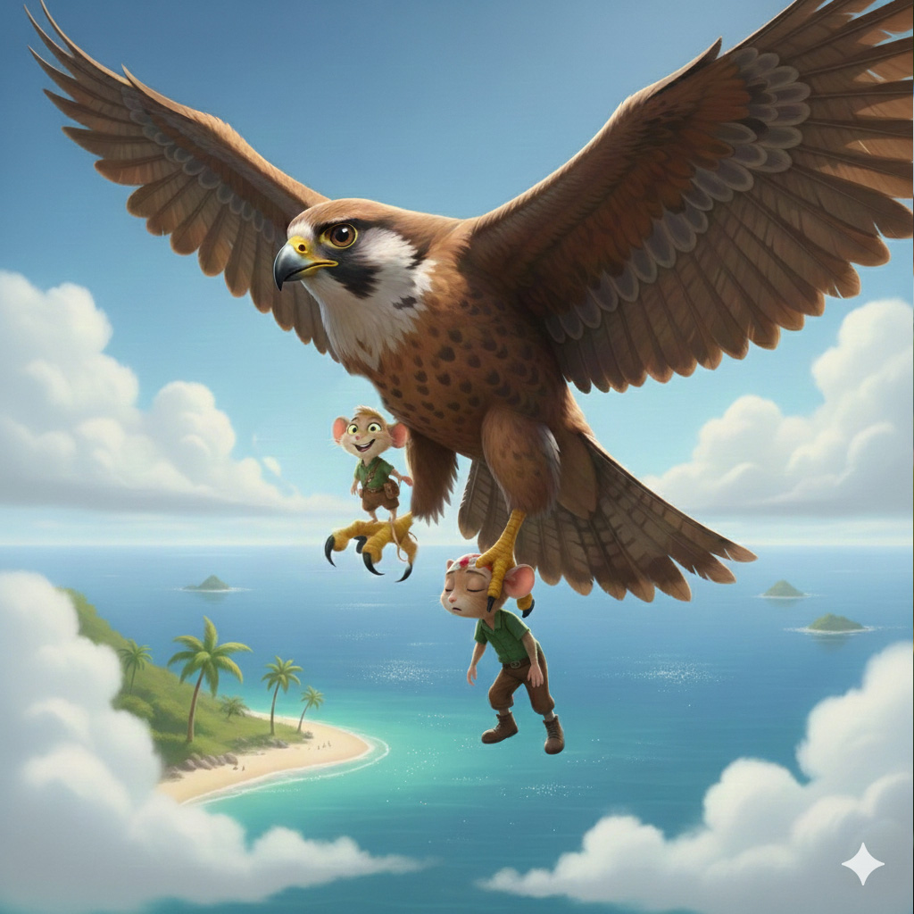 Als die Sterne am dunklen Himmel funkelten, erhob sich Falkenpeter. „Ich muss los. Aber Pieps ist in Sicherheit. Das ist alles, was zählt.“ Mit einem tiefen Rauschen flog er in die Dunkelheit davon.