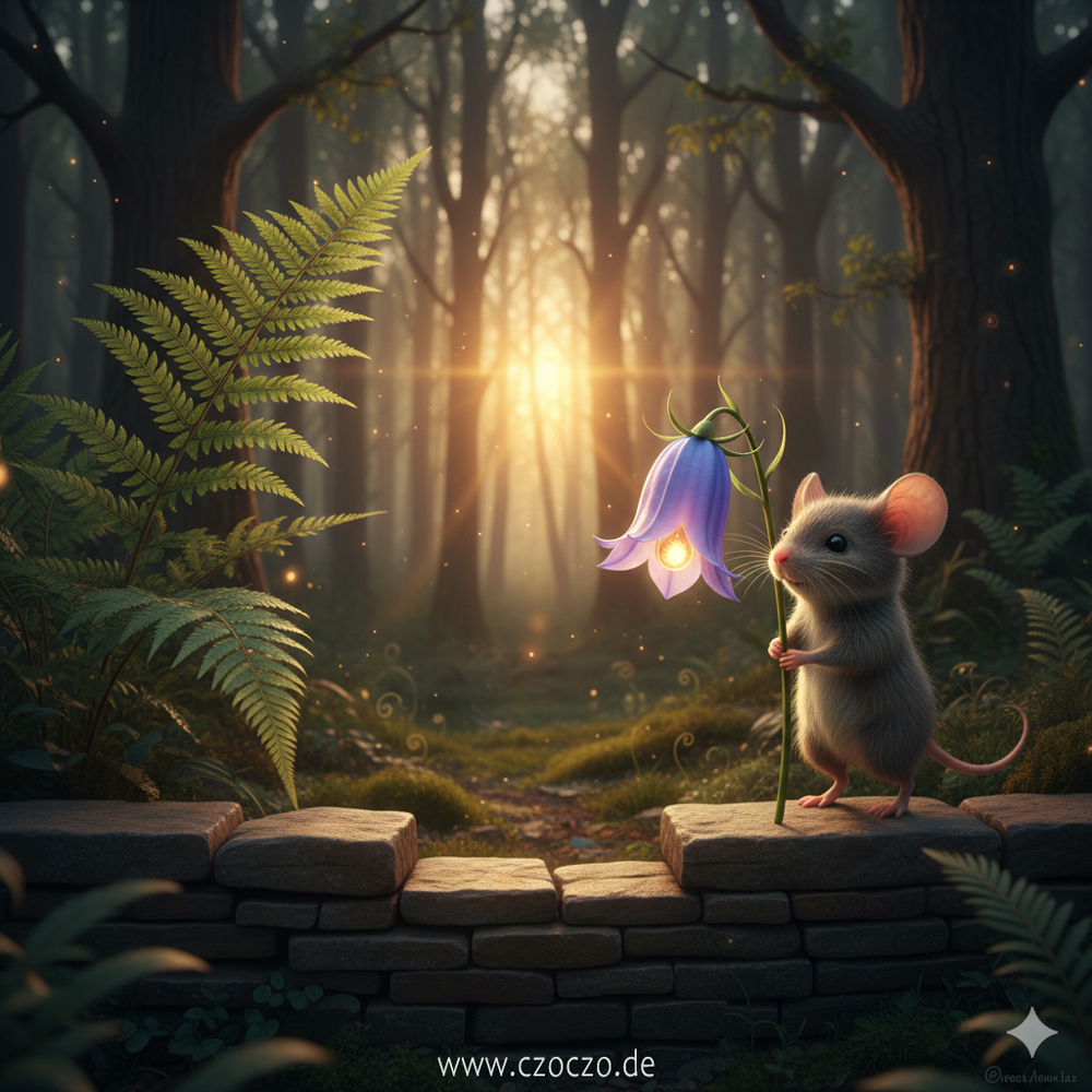 Die kleine Maus ignorierte das Grollen der Baumriesen. Auch das vermeintliche Kichern im Farn überhörte er. Er verließ das Bekannte und machte einen weiteren Schritt, dann noch einen. Die Angst war noch da, ja, aber sie war nicht mehr die Herrscherin. Sie war nur noch ein Schatten, den Pieps hinter sich herzog. Mit jedem Schritt fühlte er sich dadurch ein kleines bisschen stärker. Ein winziges bisschen mutiger. Er war nun nicht mehr nur Pieps aus dem Nest. Er war Pieps, der Wanderer, und vor ihm lag ein Weg, der versprach, ihm tausend neue Dinge zu zeigen.