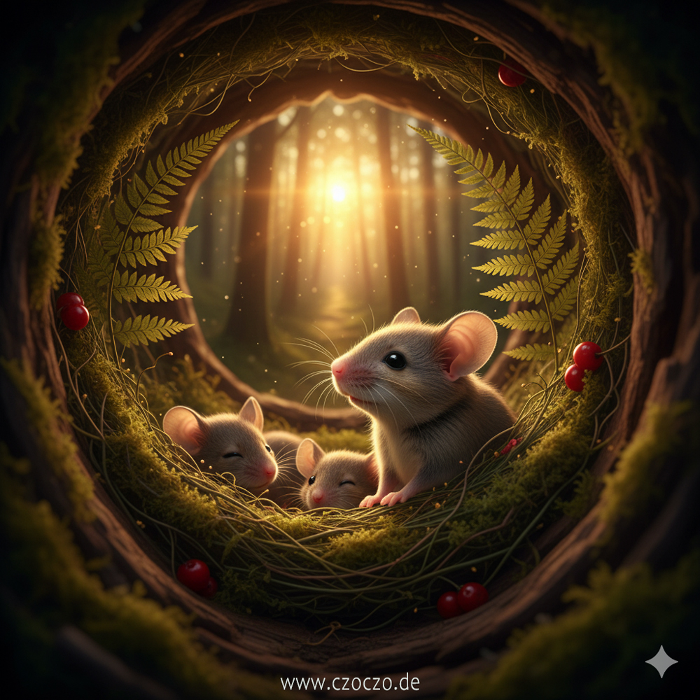 Der Wald war dunkel und oft feucht; er roch nach nassem Laub und Moos, aber er war Pieps Zuhause. Tief unter den knorrigen Wurzeln einer alten Eiche lag sein gemütliches Nest. Es war aus den weichsten Federn und feinsten Gräsern gebaut, ein Ort voller Wärme, Sicherheit und dem süßen Geruch von Familie.