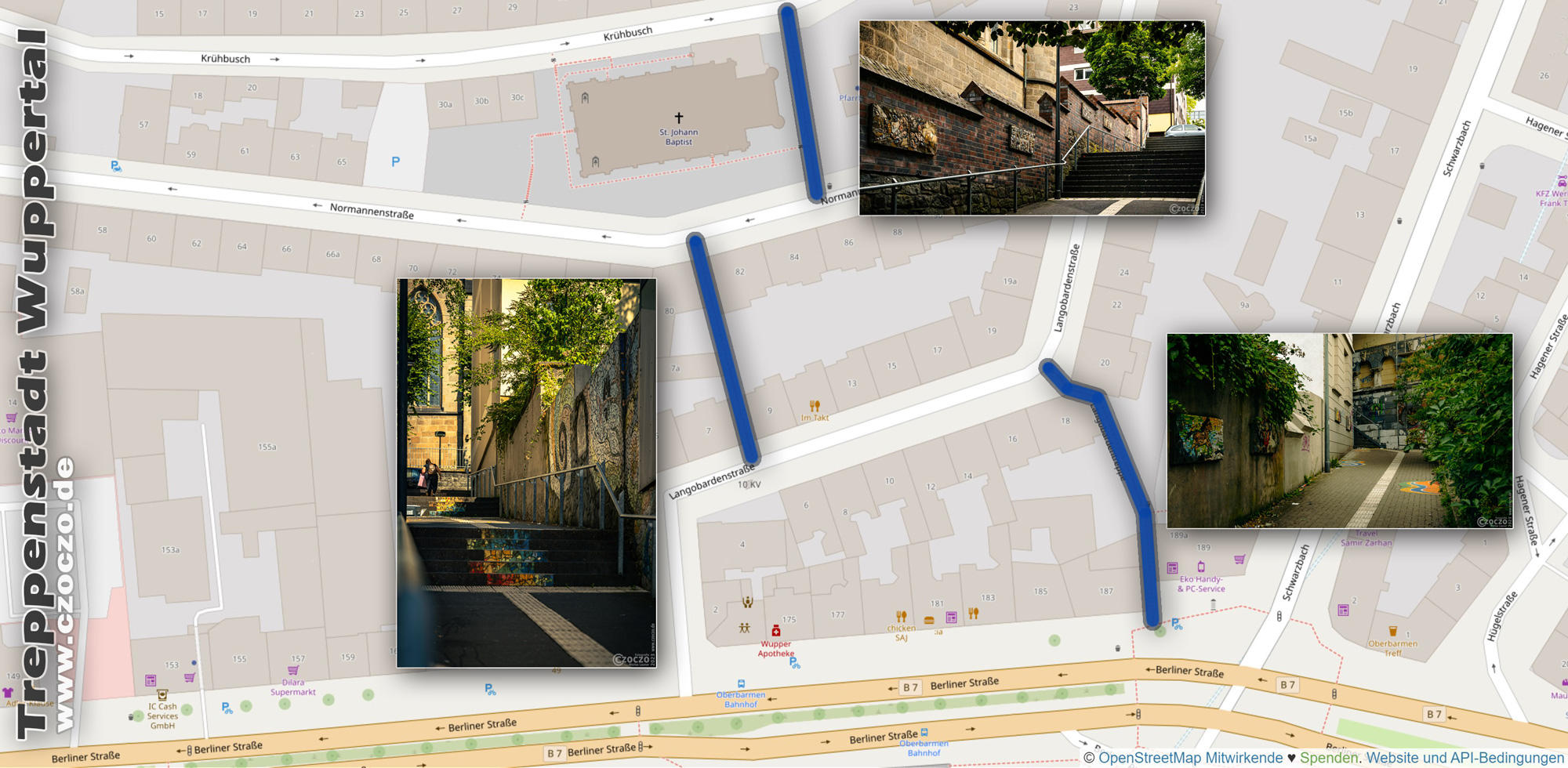 In Wuppertal gibt es viele… sehr viele öffentliche Treppen. Meisten davon alte, in der Gründerzeit gebaut, in einen zustand die man hier nicht erzählen sollte. Andere stink normale Treppen, die man nehmet wen man sich den Weg zum Bus abkürzen will.